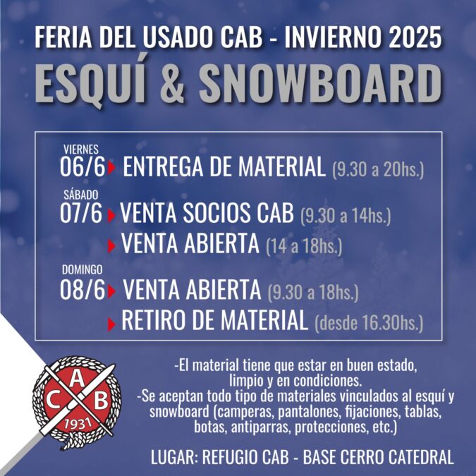 Como todos los años, la Escuela Juvenil de Ski y Snowboard organiza una nueva edición de la tradicional Feria del Usado del Club Andino Bariloche. Este encuentro, muy esperado por todos, ofrece una excelente oportunidad para comprar o vender equipamiento de esquí y snowboard, fomentando el reciclaje de materiales deportivos y el acceso a mejores…