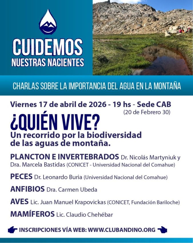En el marco de la campaña “Montañas Limpias”, el Club Andino Bariloche llevará adelante una nueva propuesta abierta a la comunidad, orientada a generar conciencia sobre el cuidado del agua en ambientes de altura. La actividad se realizará este viernes 17 de abril, a las 19 horas, en la sede del club (20 de Febrero…