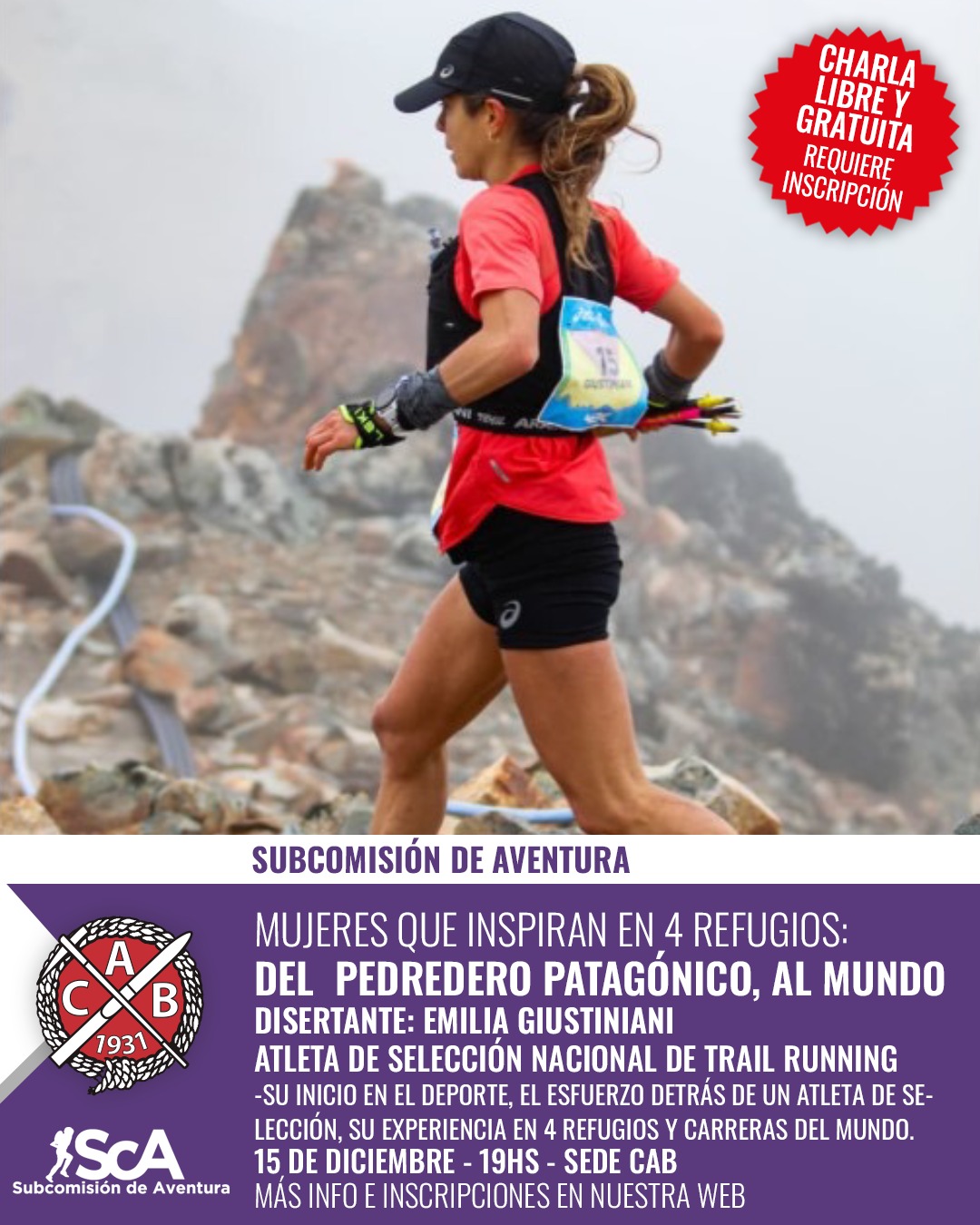 La Subcomisión de Aventura del Club Andino Bariloche invita a la comunidad a participar de una charla abierta a cargo de Emilia Giustiniani, atleta de la Selección Nacional de Trail Running, bajo el título “Mujeres que inspiran en 4 Refugios: Del pedredero patagónico al mundo”.
