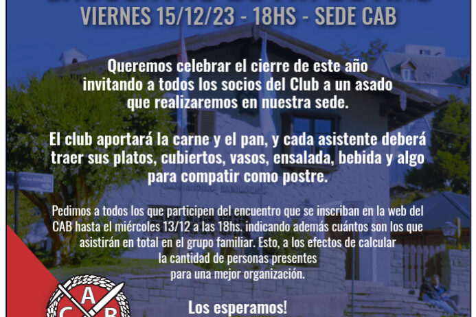 Estimados socios: Los invitamos a compartir el Encuentro de fin de año que tendrá lugar el próximo viernes 15 de diciembre…