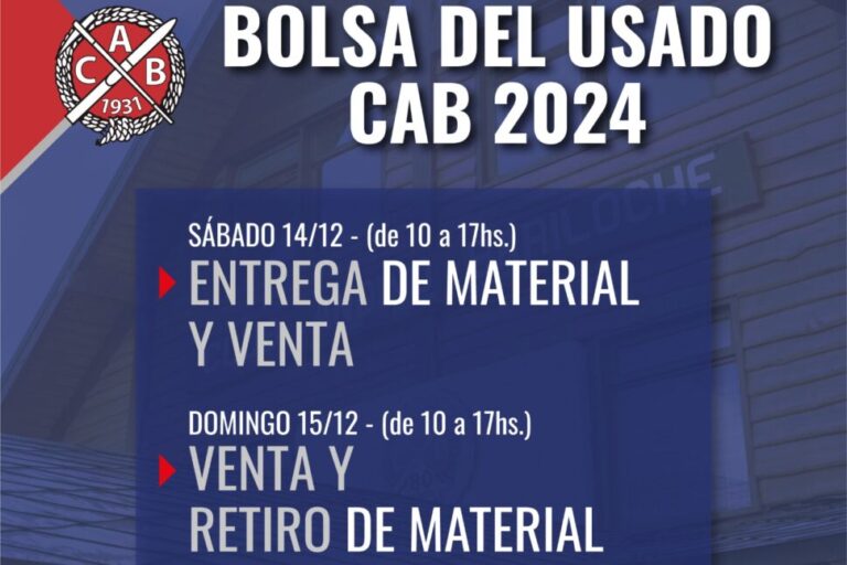 El Club Andino Bariloche llevará adelante la Feria de Verano de Montaña, la Bolsa del Usado CAB 2024. El sábado…