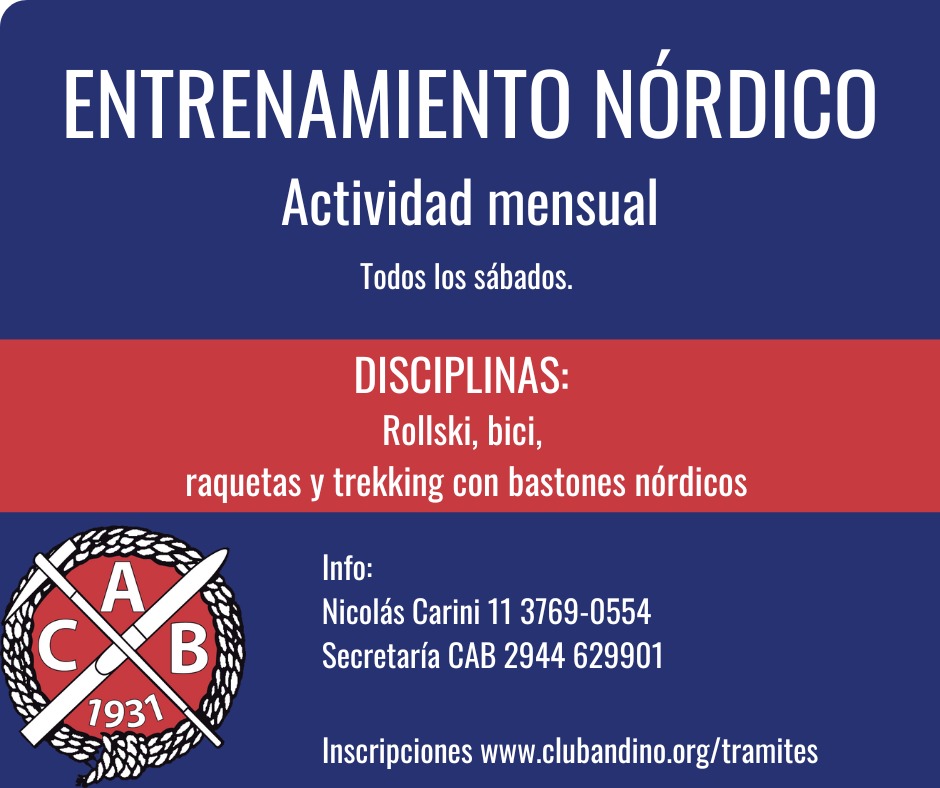El Club invita a participar del Entrenamiento Nórdico, una actividad que se desarrollará todos los sábados con una modalidad mensual. La propuesta contempla un mínimo de dos encuentros de rollers por mes, destinados a trabajar la técnica y el equilibrio, y otros dos encuentros orientados a generar un estímulo muscular y aeróbico adecuado.