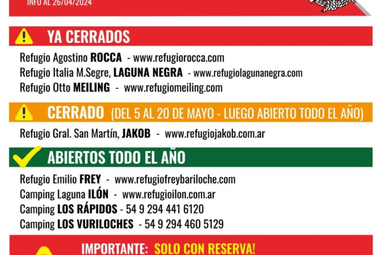 «Refugio Otto Meiling: Cerrado al público hasta fines de junio por tareas de mantenimiento.»