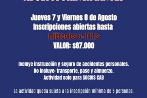 El Club Andino Bariloche invita a sus socios a participar de una Clínica de Esquí Alpino para adultos principiantes, que…
