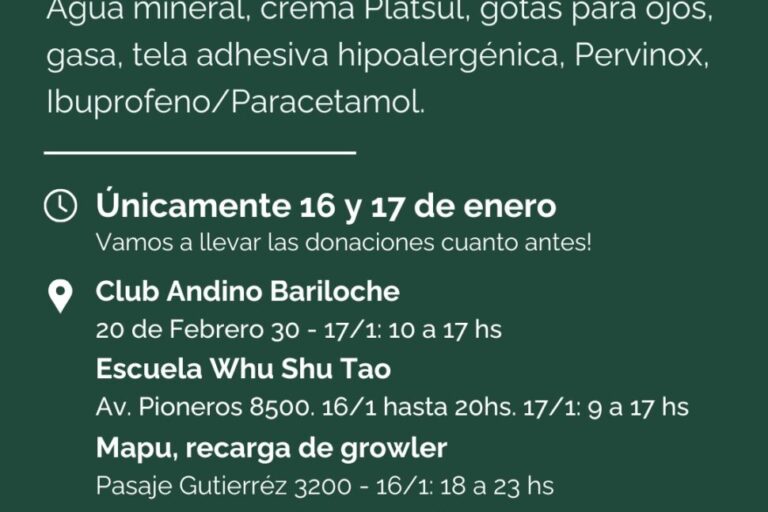 El Club Andino Bariloche será una de las sedes de Circuito Verde para donaciones que serán trasladadas a Epuyen, la…