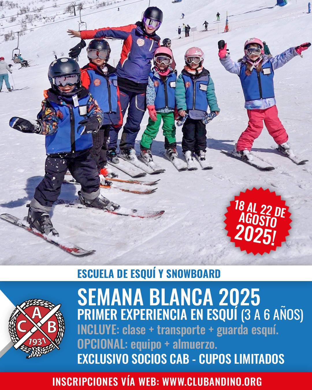 La Escuela Juvenil de Ski y Snowboard del Club Andino Bariloche abre la inscripción para la «Semanita Blanca de Ski – Primera experiencia», una propuesta especialmente pensada para niñas y niños de 3 a 6 años que se desarrollará del 18 al 22 de agosto. La actividad incluye clases diarias, transporte y guarda de esquí, con la opción de sumar equipo y almuerzo. Se trata de una excelente oportunidad para que los más chicos den sus primeros pasos en la nieve de manera divertida y segura.