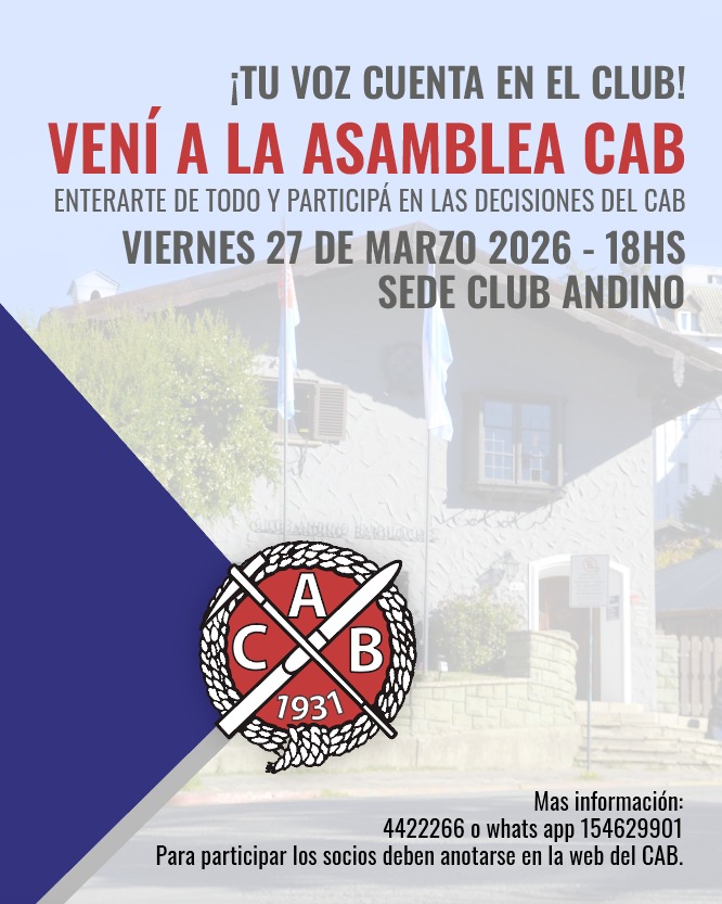 La Comisión Directiva del Club Andino Bariloche aprobó por unanimidad la memoria anual y los estados contables correspondientes al ejercicio 2025 por lo que te invitamos a participar de la Asamblea General Orginaria que se realizará el 27 de marzo de 2026 a las 18 horas en la sede del Club. ¿Quiénes pueden votar? Si sos socio Activo (+18 años), Vitalicio u Honorario, tenés más de un año de antigüedad y estás al día con la cuota… ¡te esperamos! (No te olvides el DNI).